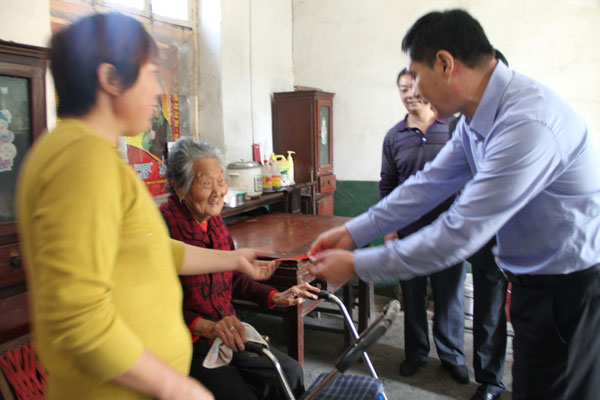 在漕河鎮(zhèn)后邴村特困戶家中,初部長和苗董事長都噓寒問暖,與老人們親切交談,關切地詢問他們的生活和身體情況,了解老人們的生活需求,送上了慰問品和慰問金,并致以節(jié)日問候,祝老人們節(jié)日快樂、健康長壽、生活幸福。