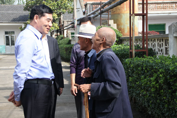在漕河鎮(zhèn)敬老院,初部長和苗董事長一行聽取了有關負責人的情況介紹,與敬老院老人親切握手,了解老人們的飲食起居、身體健康情況,送去了總價值近3萬元的面粉、大米、色拉油、保溫壺、棉被等慰問品,表達了對老人們的節(jié)日祝福。